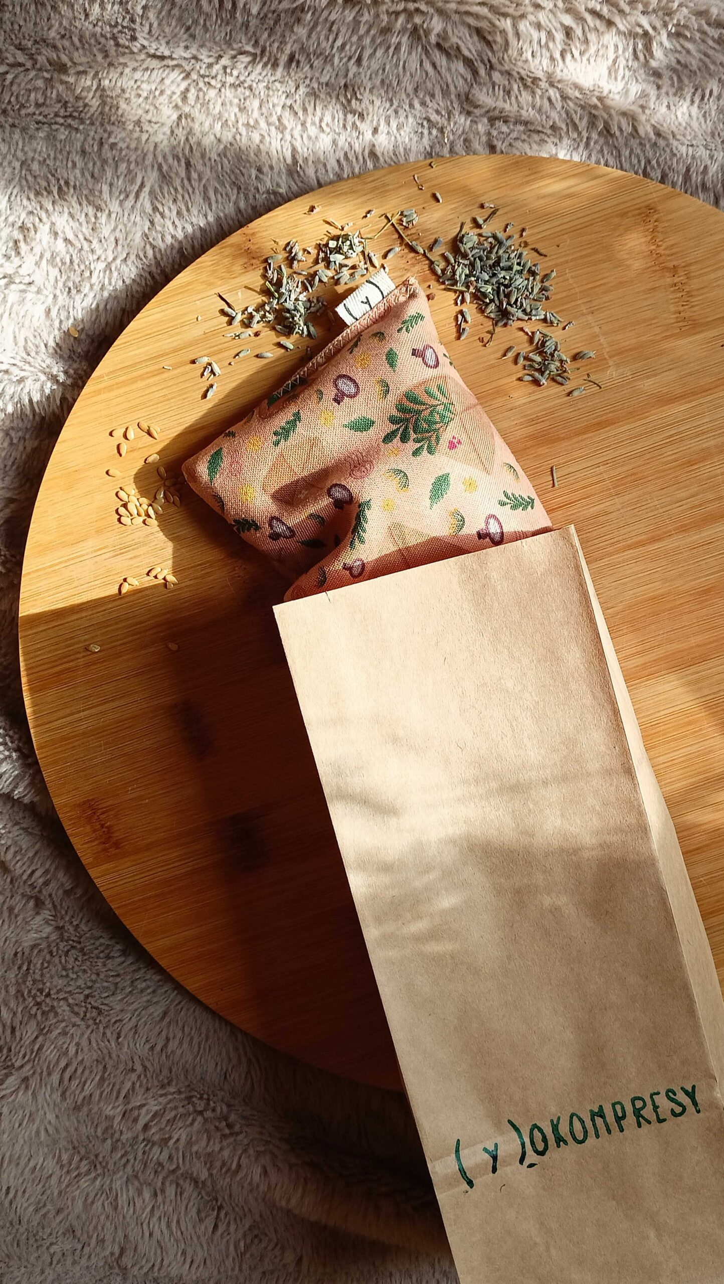 Ukoyka to relaksacyjny woreczek z siemieniem lnianym i suszonymi kwiatami lawendy oraz lipy, który kładzie się na oczy – żeby dać ciału znak, że już można odpuścić 😉